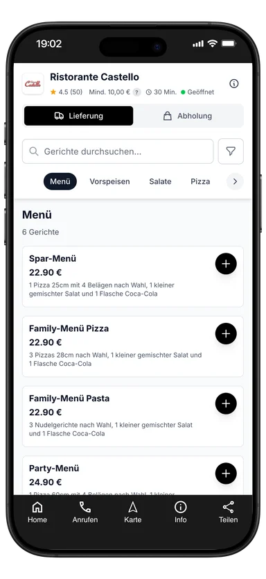 Family-Menü Pizza